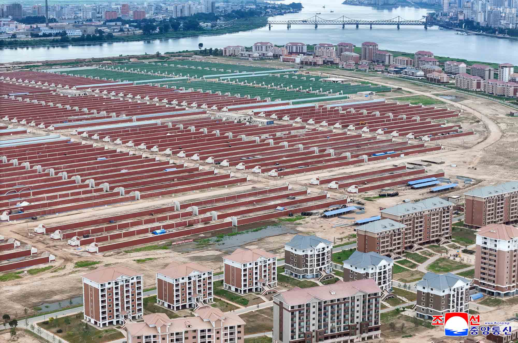 의 현명한 령도밑에 침수위험지역이 농촌문화도시로 전변되고 위화도지구에 대규모의 신의주온실종합농장이 일떠서고있다.