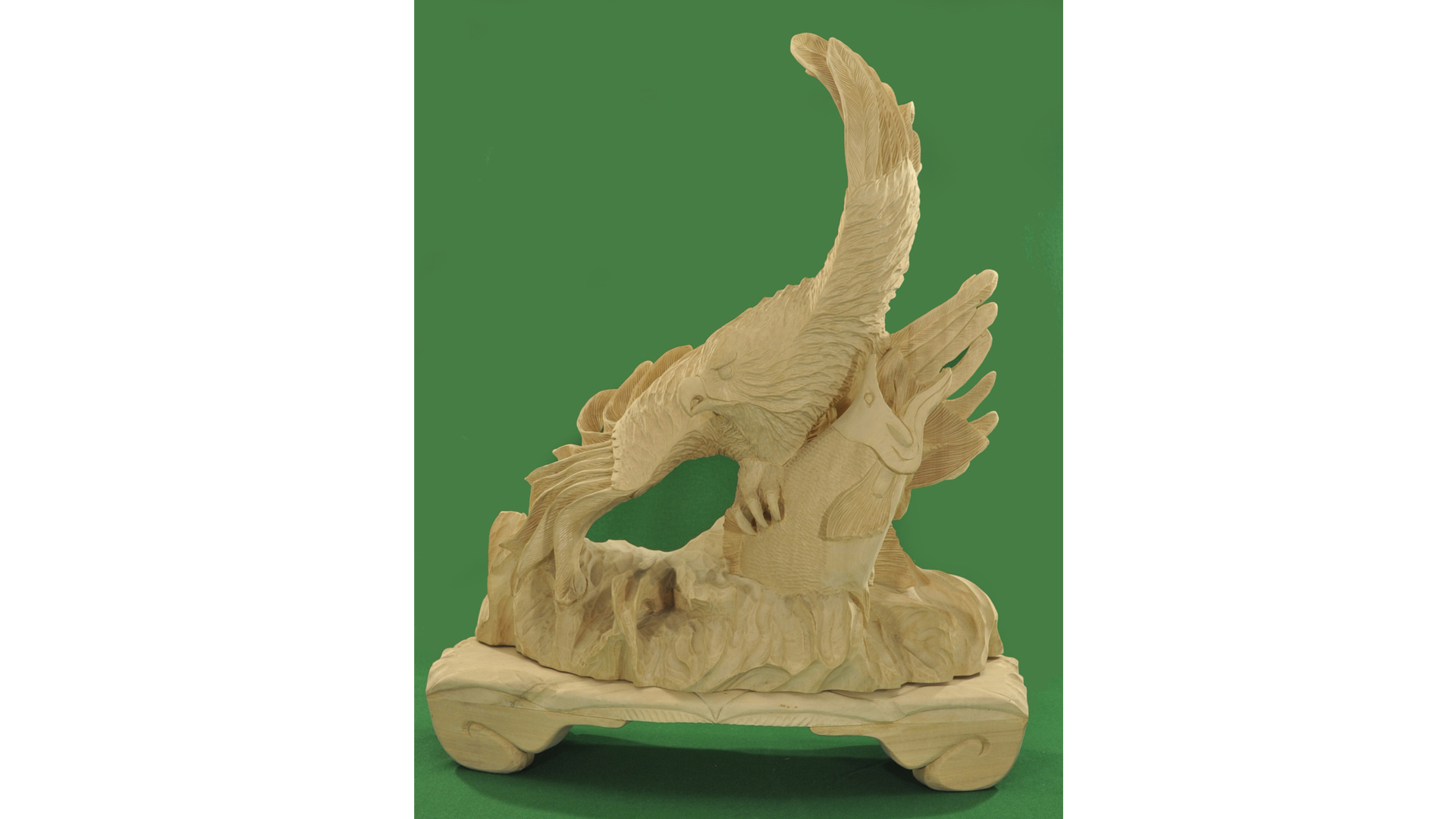 연구회대표단성원들이 공동명의로 올린 나무공예 《독수리》입니다.