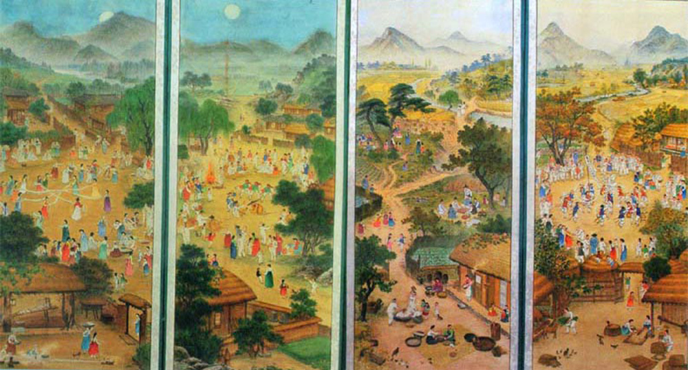 他说:“秋夕这个民间节日,是个打好一年庄稼后,边做收割新谷的准备,边庆贺粮谷丰收,欢闹一天的节日。