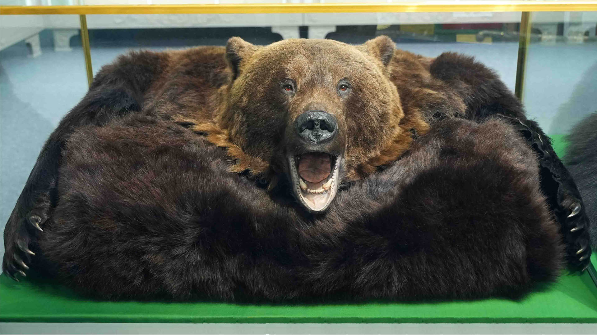 This is the bear fur presented to the respected Comrade Kim Jong Un as gift by the General Manager of the "S. B. K." Company Ltd. of Russia on January 3, 2018. The bear weighed 980 kilograms and was 230 centimetres long at the time of hunting.