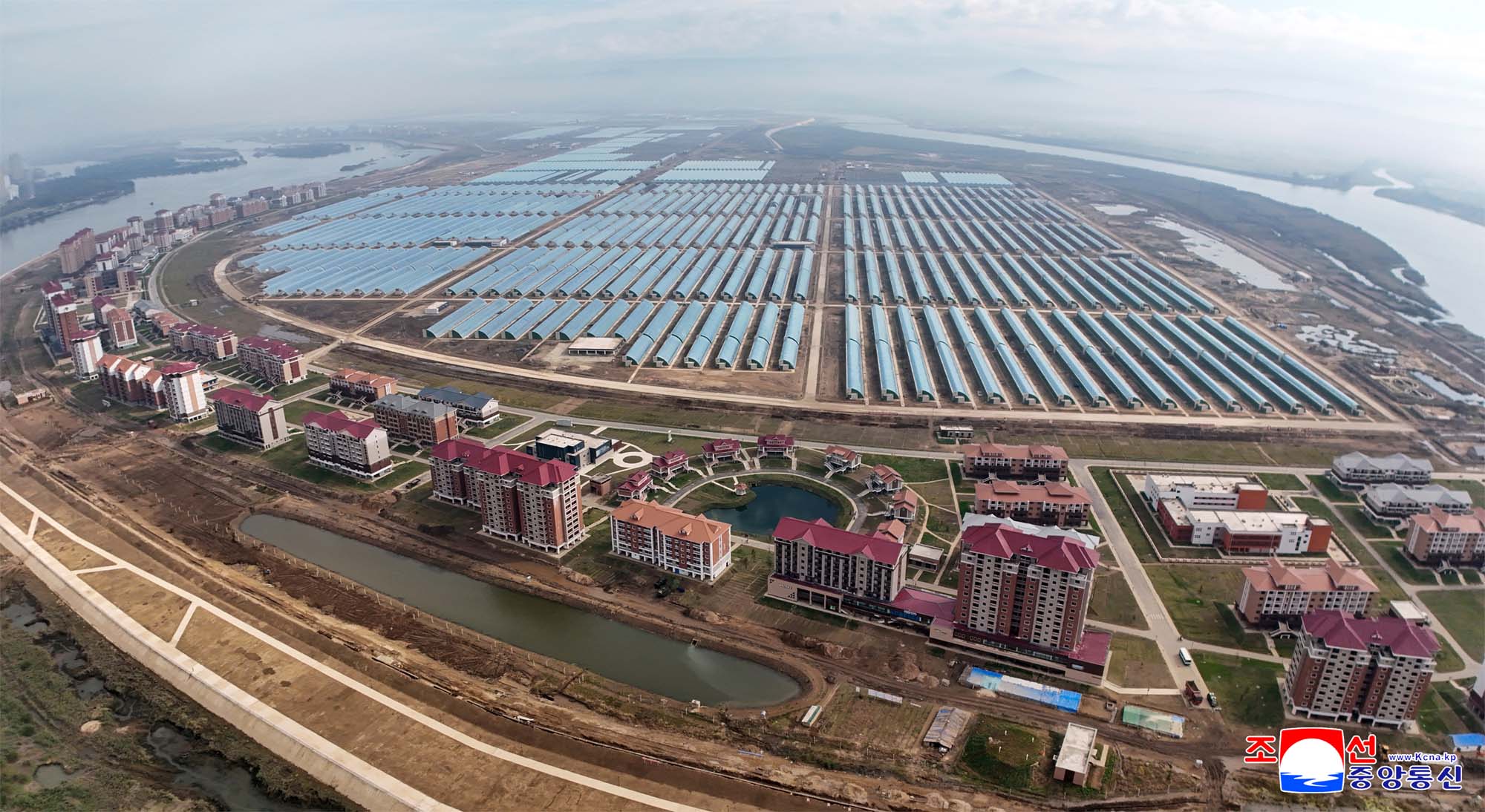 의 현명한 령도밑에 침수위험지역이 농촌문화도시로 전변되고 위화도지구에 대규모의 신의주온실종합농장이 일떠서고있다.
