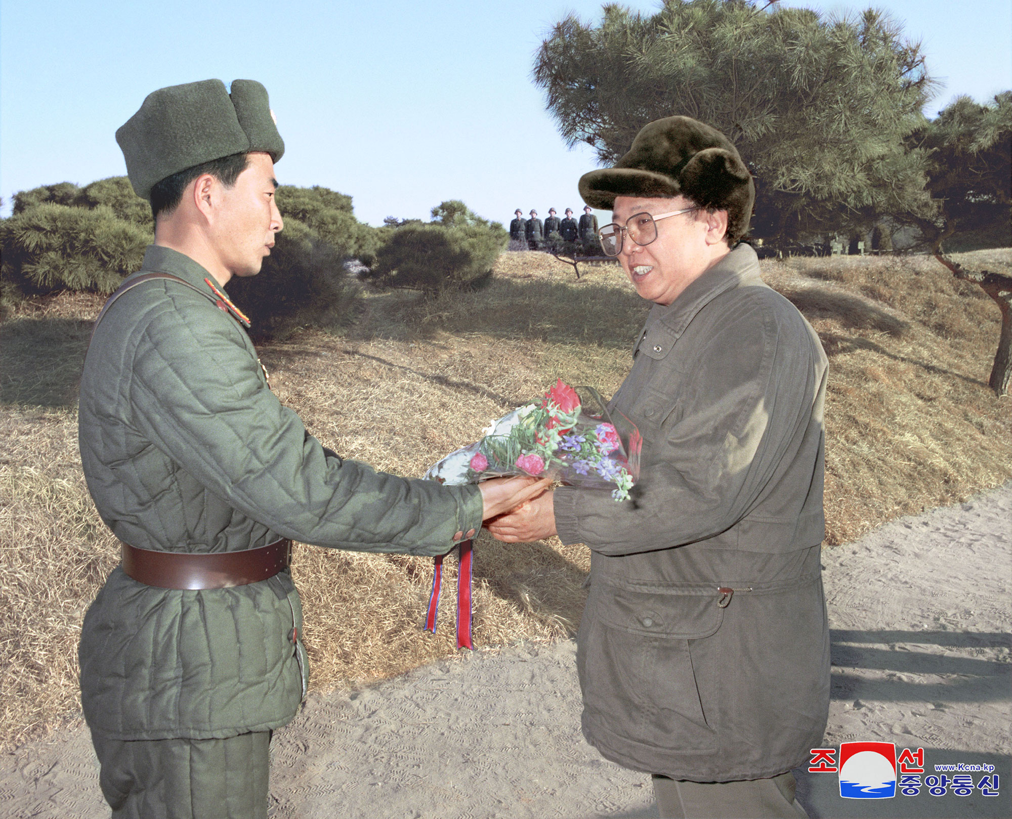金正日同志 总是和军人们在一起,哪里有军人,他就不管路途多么遥远、艰险,都去哪里。