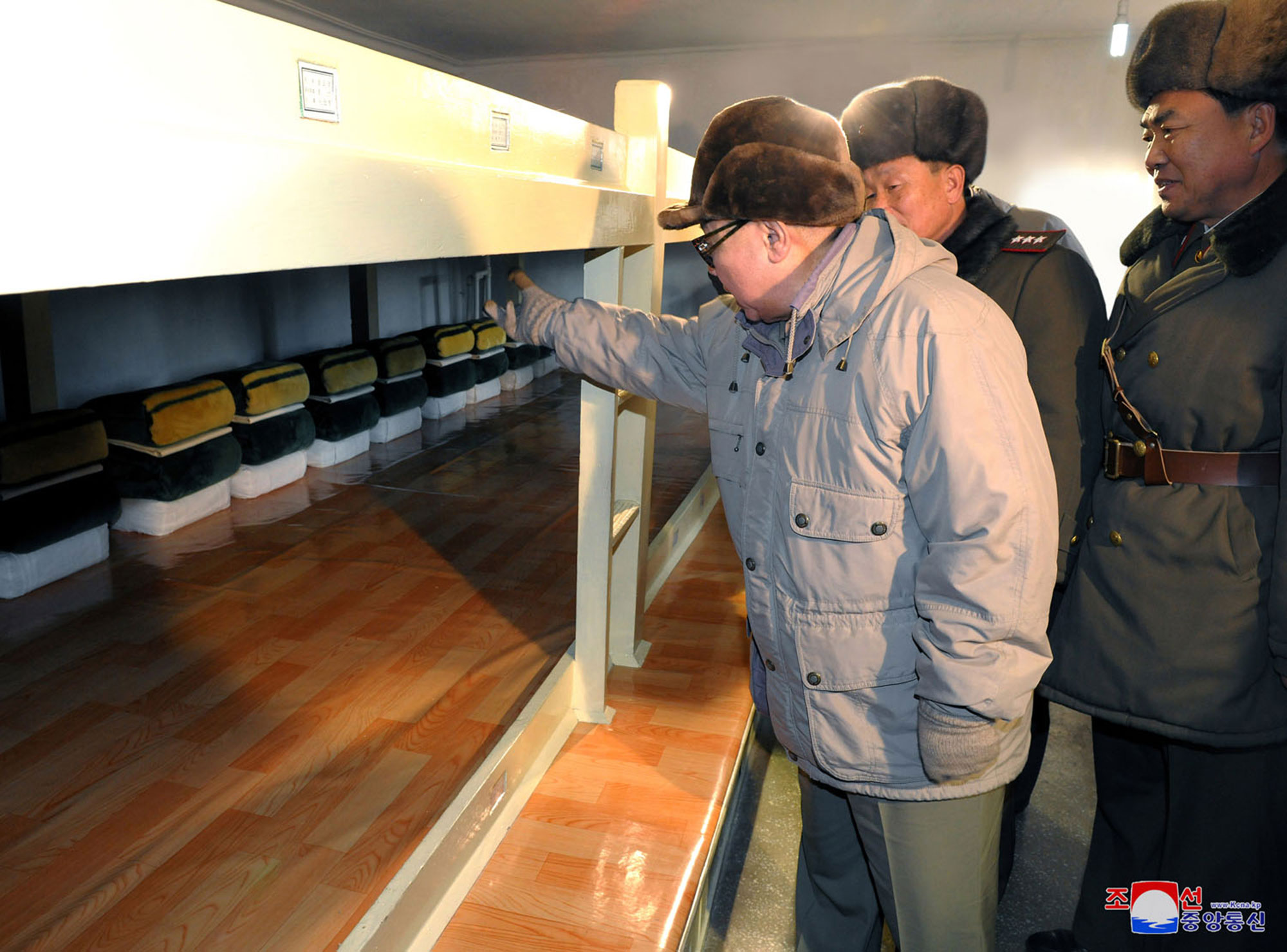 所以,金正日同志 每当视察人民军各部队的时候,都去看营房、食堂、副食品仓库、盥洗室等,细心关照士兵们的生活。